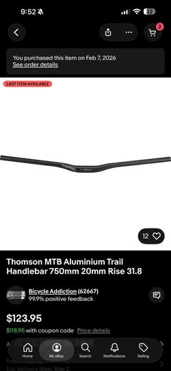 Thomson Handlebar 750mm 20mm Rise 31.8$100Irwindale, CA