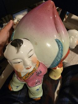 Vintage Chinese Porcelain Figurine Family Rose Three Children Carrying Peach$100Hazard, CA