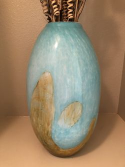 Beautiful Large Light Blue and Tan Glass Floor Vase $65San Antonio, TX