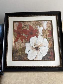 Floral wall art with rust, cream, & tan colors in a dark brown frame.$25San Antonio, TX