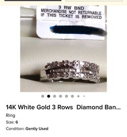 14k White Gold 3 Rows Ring Band New$450San Jose, CA