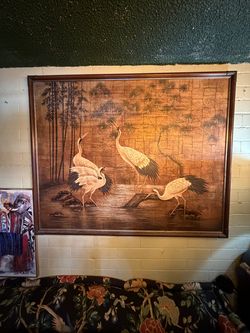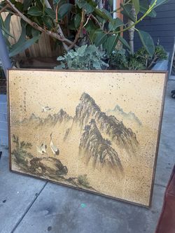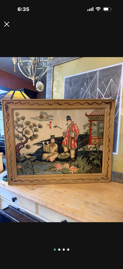 Mid Century bamboo style frame Chinese wall art oil on canvas signed$300Coronado, CA
