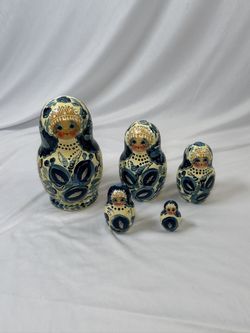 Vintage Hand-Painted Russian Nesting Dolls Matryoshka Set Gzhel Style, Signed$120Alta Loma, CA