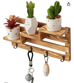 Rustic Wall-Mounted Entryway Burnt Wood Display Shelf with 4 Key Hooks, 15.8 inches, Torched Brown$5Chino Hills, CA
