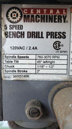 5 Speed Central Machinery Table Top Drill Press$65Montebello, CA