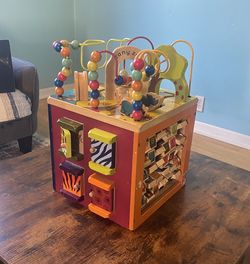 B. – Wooden Activity Cube – Activity Center with Alphabet – Educational Toys – Wooden Toys for Toddlers, Kids – 1 Year + – Zany Zoo$15Chicago, IL