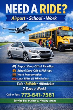Need a Ride? Airport, School & Work Transportation$1Skokie, IL