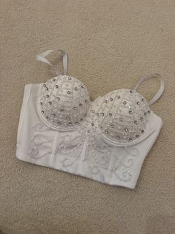 White Sequence, Pearl And Rhinestone Corset With Boning Adjustable Straps Size M$16Niles, MI