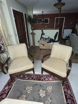 Two Wooden Side Chairs Sandy Gold Cushions Excellent Condition $230San Luis Obispo, CA