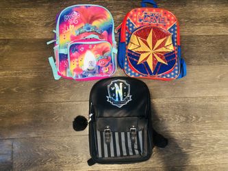 Trolls Backpack With Lunch Bag, Wednesday, Marvel Captain School Backpack $10Huntington Beach, CA