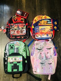 5 Pc Lion king/ Jurassic Park , 3 Pc Minecraft , 2 Pc Unicorn Backpack$15Huntington Beach, CA
