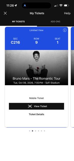 Bruno Mars Tickets October 6th Section 216 $475Westchester, CA