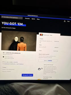 Kanye Ye Tickets April 3rd At Sofi Floor Section$1,000Westchester, CA