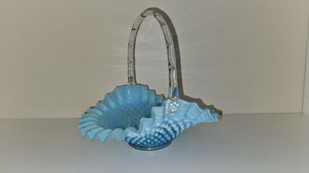 Fenton blue opalescent hobnail glass basket$50Auburn, WA