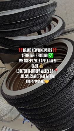 BRAND NEW BIKE PARTS TIRES TUBES GRIPS SEATS ACCESSORIES AND MORE HIT ME UP FOR PRICES!$0Riverside, CA