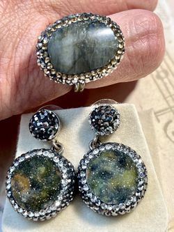 Sterling Silver Earrings And Ring Set With labradorite And Marcasite Crystals, Adjustable Size Ring, Size 7-8$40Arlington Heights, IL