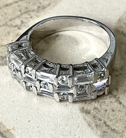 Silver Ring With Crystals, Rhodium Plated, Size 7-7.5$8Arlington Heights, IL