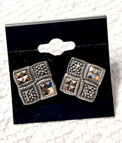 Sterling Silver Earrings, Marcasite Square Stud Earrings, Vintage Inspired, 925 Sterling Silver $20Arlington Heights, IL