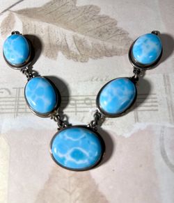 Larimar Large Cabochon Necklace, Silver Larimar Pendants, 5 Stones, 925 Silver$70Arlington Heights, IL