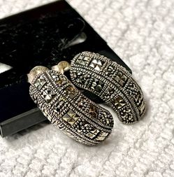 Earrings Sterling Silver Marcasite Half-Hoop Stud Earrings, Vintage Jewelry, Art Deco Inspired, 925 Sterling Silver $28Arlington Heights, IL