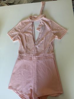 This is a pink striped romper with a deep V-neck and a neck-tie detail.$10Fort Lauderdale, FL