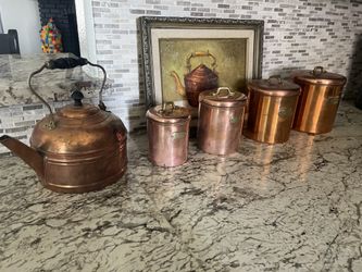 Rome copper kettle brass detail kitchen storage canisters tea flour sugar coffee$125Hesperia, CA