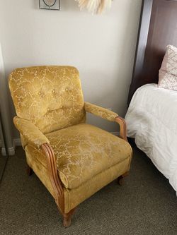 Antique Vintage Fabric Yellow Patterned Chair Golden Gold Farmhouse Cozy Home Decor Rocker$125Hesperia, CA