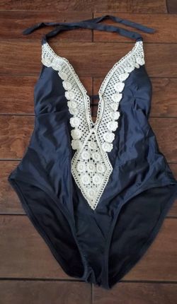 New Black And Cream Sexy Cheeky One Piece Bathing Suit. New. Tie neck and back, cheeky one piece bathing suit. Black and cream, low cut chest with emb$10Hesperia, CA