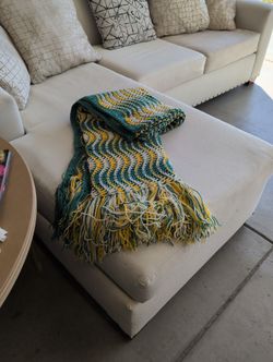 Crocheted Afghan Blanket - Green Gold And White With Fringe$10Lancaster, CA