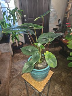 2ft 8in Tall Elephant Ear Plant In 12in Wide Ceramic Pot With Glazed Stones $40Chandler, AZ