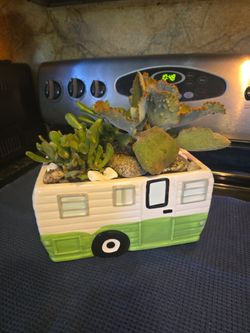 10in Ceramic Caravan Planter With Live Succulents And Cool Stones$18Chandler, AZ