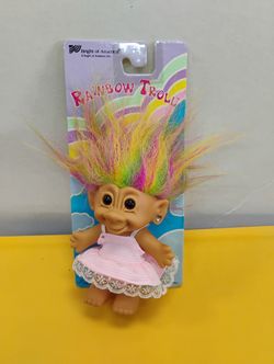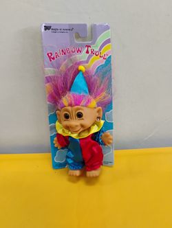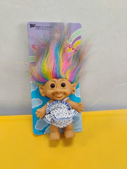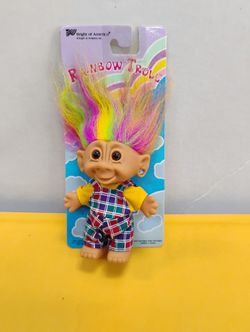 Vintage Bright of America rainbow-haired troll doll, still attached to its original packaging, often referred to as a "My Lucky Rainbow Mini Troll Dol$12Philadelphia, PA