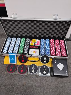 500-piece poker chip set in an aluminum carrying case & Protocol poker glass coaster set that comes in a themed Ace of Spades storage case.$100Philadelphia, PA