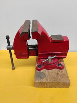 Vintage red mechanical bench vise, likely a collectible. It features a 360-degree swivel base for versatile positioning.$40Philadelphia, PA