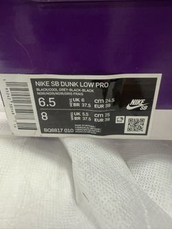 Nike SB Dunk Low Pro Black Fog Gum Light Grey$150Oak Lawn, IL