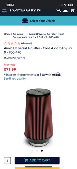 Intake Air Filter 4” X 9”$20Los Angeles, CA