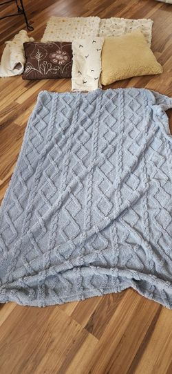 2 Decorator Pillows with Blue Throw, Includes halloween and christmas pillow covers$15Joliet, IL