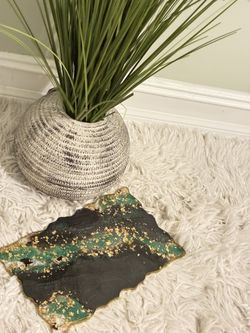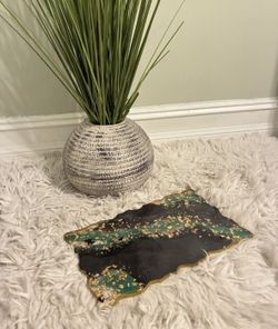 Handmade Resin Tray: Black, Green, Gold Foil & Dried Roses$40Miami, FL