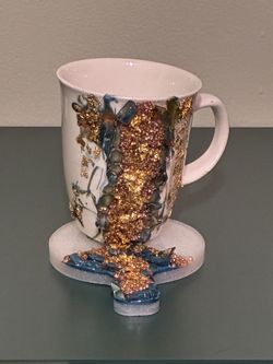Handmade White Resin Art Cup & Tray Set – Glittery Design$30Miami, FL