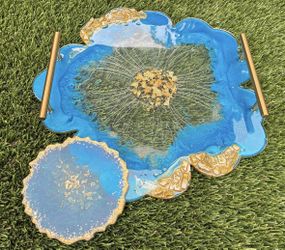 Large Floral Resin Tray Set – Blue & Gold Geode-Inspired$49Miami, FL