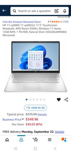 17.3" Touchscreen Notebook, AMD Ryzen 5500U, Windows 11 Home, 16GB RAM, 1 TB SDD, (Certified Refurbished)$300Fullerton, CA