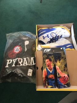 Curry 2 good condition & new pyramid shirt combo 120.00 shirt size xl$80Columbus, OH