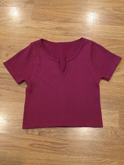 Magenta Ribbed Short Sleeve Notched V-Neck Top 9-10Y$3Chula Vista, CA