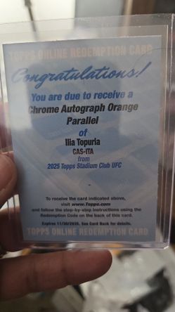 2025 TOPPS ILLA TOPURIA AUTO Orange #/25 Redemption CARD$650Sun City, AZ