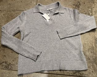 (NEW) Long-Sleeved V-Neck Sweater, Gray, Medium$10Cypress, TX