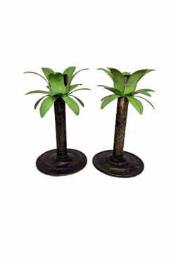 Set Of 2 Palm Tree Metal Taper Candle Holders Tropical Hollywood Regency Antiqued Finish.$32Santa Clarita, CA