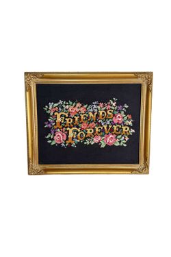 BETTY WHITEAKER Cross Stitched Gold Framed Floral Embroidered “Friends Forever” Poster. $32Canyon Country, CA