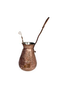 Vintage copper Turkish coffee pot featuring an embossed grapevine pattern with a long, ornate handle and a spoon.$69Santa Clarita, CA