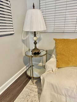 Round two tiered mirrored antique brass toned side table. $110Canyon Country, CA