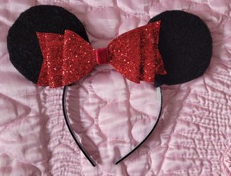 Minnie Mouse Kids WDW Walt Disney World Red Ribbon Ears MICKEY Hat Glitter$6Lynnwood, WA